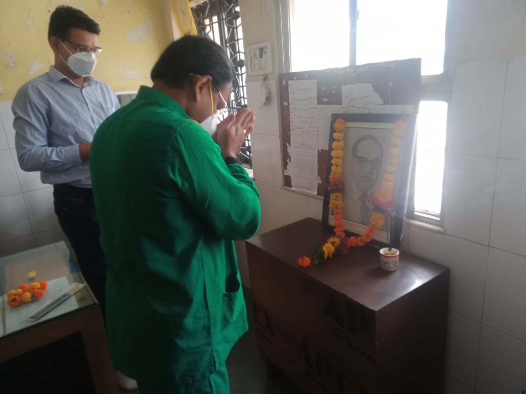 जळगाव – येथील शासकीय वैद्यकीय महाविद्यालय व रुग्णालयात भारतरत्न डॉ. बाबासाहेब आंबेडकर यांची १३० वी जयंती साजरी करण्यात आली. यावेळी अधिष्ठाता डॉ. जयप्रकाश रामानंद यांनी प्रतिमेला माल्यार्पण करून अभिवादन केले.
