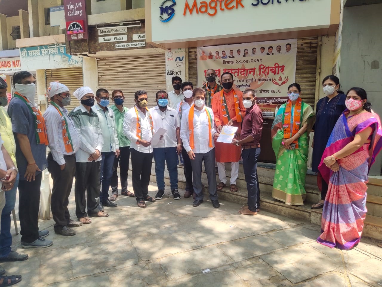 या शिबिराला नागरिकांचा उत्तम प्रतिसाद मिळाला मंडळ क्र 6 रामानंद नगर व मंडल क्र 2/3 मंडळा तर्फे आज दिनांक 28 एप्रिल रोजी स्व. मीनाताई ठाकरे मार्केट येथे व भा ज पा कार्यालय वसंत स्मृति येथे सकाळी 9 ते दुपारी 1 वाजेपर्यंत रक्तदान शिबिर घेण्यात आले.