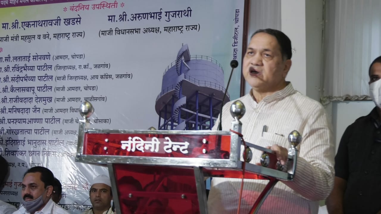 चोपडा, जि. जळगाव नगरपरिषदेच्या नूतन पाणीपुरवठा (अंदाजपत्रकीय रक्कम 64.76 कोटी रुपये) योजनेंतर्गत जलशुध्दीकरण केंद्र व जलकुंभाचा उद्घाटन सोहळा गृहमंत्री श्री. वळसे- पाटील यांच्या हस्ते आज सकाळी पार पडला. त्यावेळी ते बोलत होते. जळगाव जिल्ह्याचे पालकमंत्री तथा राज्याचे पाणीपुरवठा व स्वच्छता मंत्री गुलाबराव पाटील हे या कार्यक्रमाच्या अध्यक्षस्थानी होते. यावेळी आमदार अनिल पाटील, नगराध्यक्षा मनीषा चौधरी, जळगाव जिल्हा मध्यवर्ती सहकारी बँकेचे अध्यक्ष गुलाबराव देवकर, विधानसभेचे माजी अध्यक्ष अरुणभाई गुजराथी, माजीमंत्री एकनाथराव खडसे, उपनगराध्यक्ष भूपेंद्रभाई गुजराथी, माजी खासदार ॲड. वसंतराव मोरे, माजी आमदार डॉ. सतीश पाटील, दिलीप वाघ, दिलीप सोनवणे, कैलास पाटील, मनीष जैन, रविंद्र पाटील, संदिप पाटील आदी उपस्थित होते.