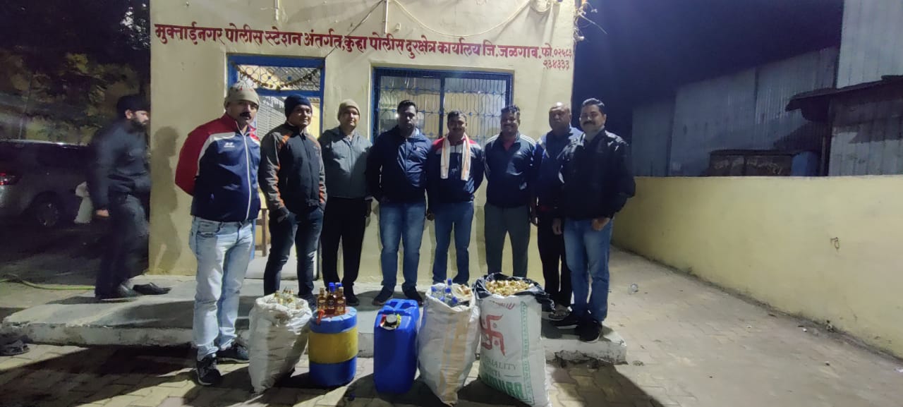 कुऱ्हा येथे अमोल वानखेडे याच्या घराच्या गच्चीवर बनावट दारूचा कारखाना सुरू असल्याचे आढळून आले. संशयित वानखेडे याने दिलेल्या माहितीनुसार त्याचा साथीदार अमोल वसंत भोई (रा. कुऱ्हा) हा देखील यात सहभागी असल्याचे स्पष्ट झाले आहे. छापा टाकल्यानंतर ३७ हजाराच्या मुद्देमालासह संशयित वानखेडेला अटक केली. तर या प्रकरणातील अन्य दोन संशयित पसार आहेत. मंगळवारी पहाटे झालेल्या या कारवाईमुळे खळबळ उडाली. संशयिताविरुद्ध कलम ३२८, ४२०, ६५ प्रमाणे गुन्हा दाखल करण्यात आला आहे. ही कारवाई जळगाव स्थानिक गुन्हे शाखेचे पोलिस निरीक्षक किरणकुमार बकाले यांच्या मार्गदर्शनाखाली, पोलिस नाईक किरण धनगर, हवालदार दीपक पाटील, पोलिस नाईक प्रमोद लाडवंजारी, रवींद्र पाटील, नंदलाल पाटील यांनी ही कारवाई केली.