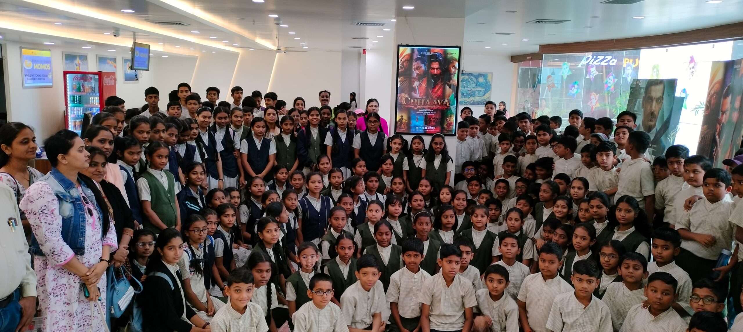 स्टार मल्टिप्लेस या अत्याधुनिक चित्रपट गृहामध्ये ‘छावा’ चित्रपटाची अनुभूतीच्या इयत्ता ५ वी ते ९ वीच्या विद्यार्थ्यांनी घेतली. शिक्षक, शिक्षकेतर सहकारी व विद्यार्थी असे एकून २६७ जणांनी एकाच वेळी तीन स्क्रीन वर छावा चित्रपट बघितला. यासाठी प्राचार्या रश्मी लाहोटी, जनसंपर्क अधिकारी मनोज दाडकर, रूपाली वाघ यांच्यासह सर्व शिक्षकवृदांनी यशस्वीतेसाठी सहकार्य केले.