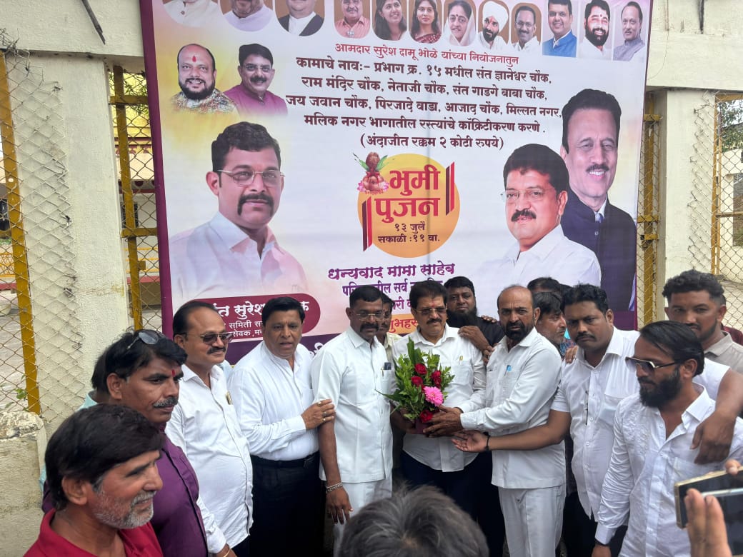 जळगाव – मेहरूण मधील प्रभाग क्रमांक 15 मधील आमदार राजू मामा भोळे यांच्या माध्यमातून दोन कोटी रुपये मंजूर झाल्याने या रस्त्याचे भूमिपूजन संपन्न झाले. या महत्त्वाच्या क्षणी आमदार राजू मामा भोळे यांच्या हस्ते हा सोहळा पार पडला, ज्यामध्ये ग्रामस्थ, स्थानिक पदाधिकारी आणि कार्यकर्ते मोठ्या संख्येने सहभागी होते.