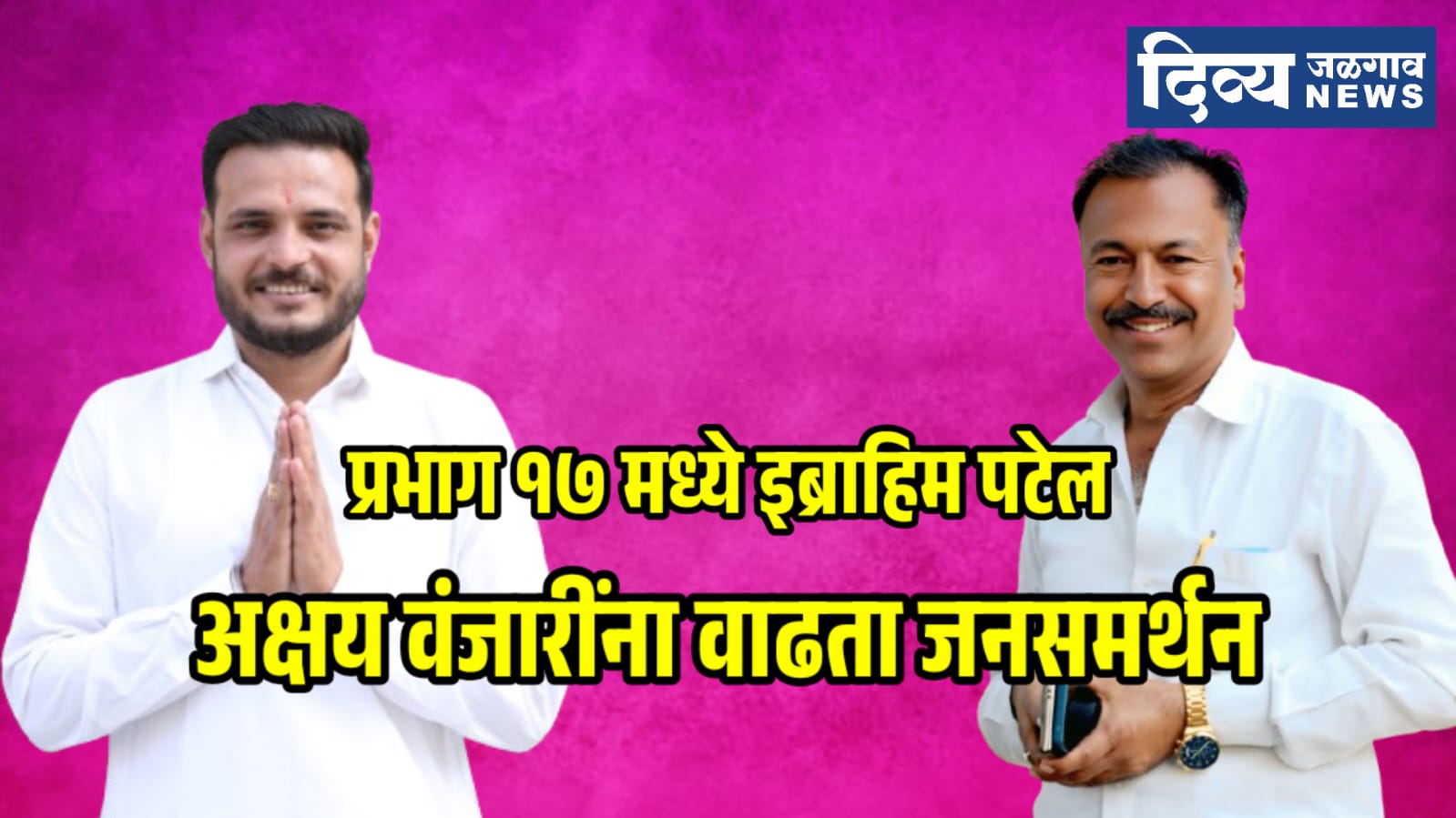 इब्राहिम पटेल आणि अक्षय वंजारी यांच्या प्रचाराला नागरिकांचा उत्स्फूर्त प्रतिसाद मिळत असून, तरुणांपासून ज्येष्ठ नागरिकांपर्यंत सर्व स्तरातून पाठिंबा वाढताना दिसत आहे. “प्रभागातील समस्या सोडवण्यासाठी सक्षम, सुशिक्षित आणि सक्रिय नेतृत्वाची गरज आहे,” अशी भावना नागरिक व्यक्त करीत आहेत.