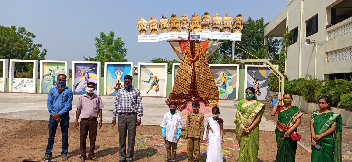 वेणू मुंदरा, शुभम जयस्वाल , ऋतूच खाडिलकर या विद्यार्थ्यांनी विजयादशमी या दिवसाचे महत्त्व सांगितले तर श्रावणी अर्णीकर हिने नृत्य सादर केले व अवनी दर्यापूरकर हिने कविता सादर केली . पीपीटी प्रेझेंटेशन द्वारा कोविड योद्ध्यांचे महत्त्व, कार्य व करोना विषयी घेण्याची काळजी हे प्रस्तूत केले शाळेचे प्राचार्य अमित सिंह भाटिया समन्वयिका संगीता तळलेले स्वाती अहिरराव अनघा सागडे व सांस्कृतिक विभाग प्रमुख भारती अत्तरदे यांच्या हस्ते रावण दहनाचा कार्यक्रम करण्यात आला.